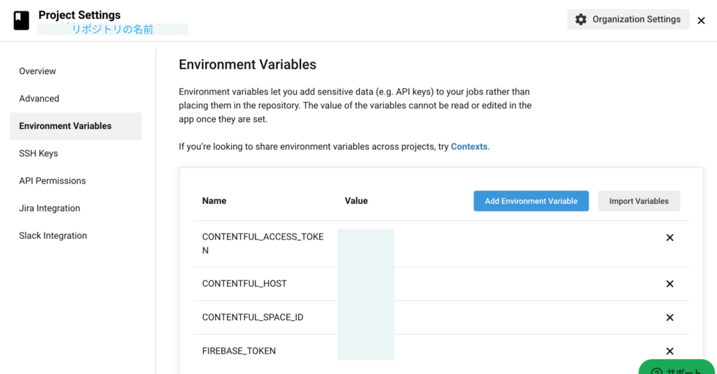 ターミナルにトークンが表示されるのでCircleCIの環境変数に設定します。